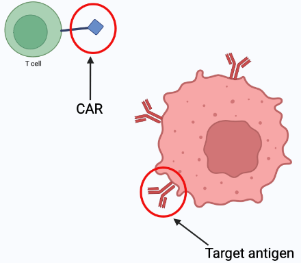 Chimeric antigen receptors (CAR) are synthetically engineered receptors that re-direct lymphocytes (usually T cells) to recognise and eliminate cells expressing a specific target antigen (1). T cells are an important component of the immune response (7). Therefore when the CAR binds to the target antigen the T cell becomes activated resulting in an anti-tumor response (1). Basically, CAR guides immune cells to target cancer cells causing a faster and more intense immune response.